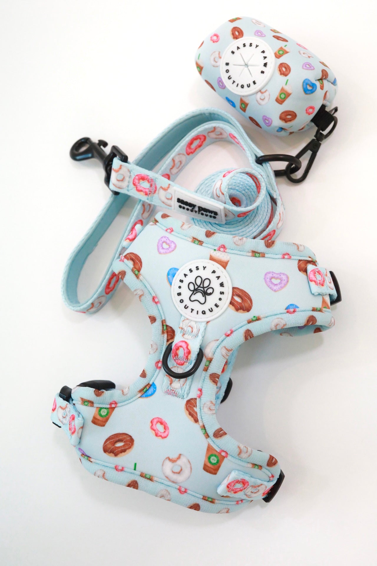 Get your paws on the full look and a sweet deal too with our 'Donuts & Pawpuccinos' walking set bundle.